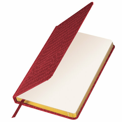 Ежедневник недатированный А5 (138х213 мм) BRAUBERG "Comodo", под матовую крокодиловую кожу, 160 л, крем. блок, зол. срез, красный, 123840