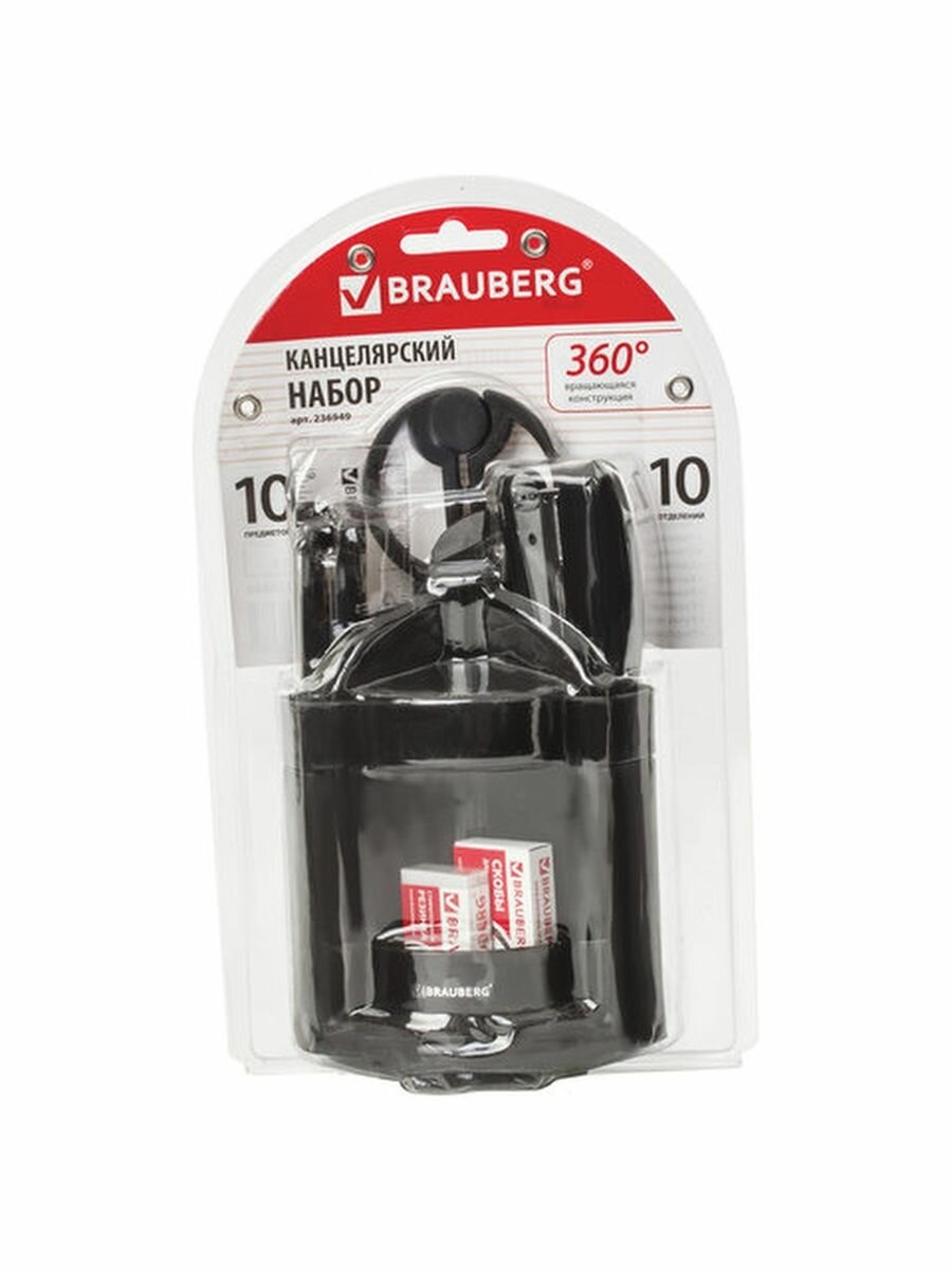 Канцелярский набор Brauberg "Офисный 100", 10 предметов, вращающийся, черный (236949)