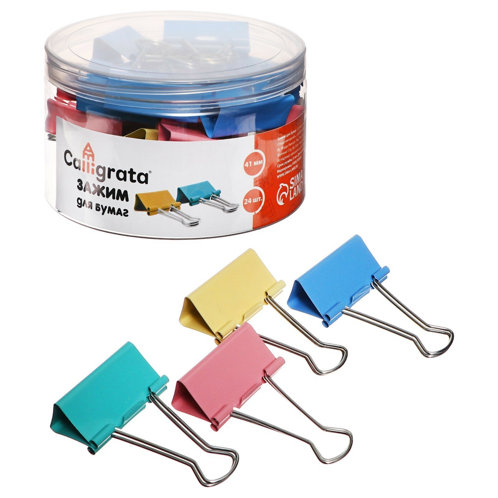 Calligrata Набор зажимов для бумаг, цветные, 41 мм, 24 шт., 4 цвета, в пластиковой тубе, микс