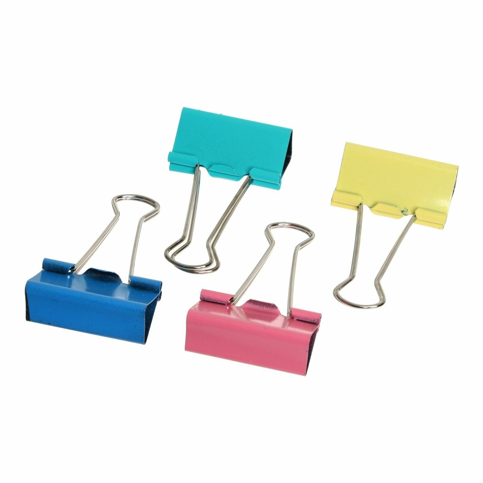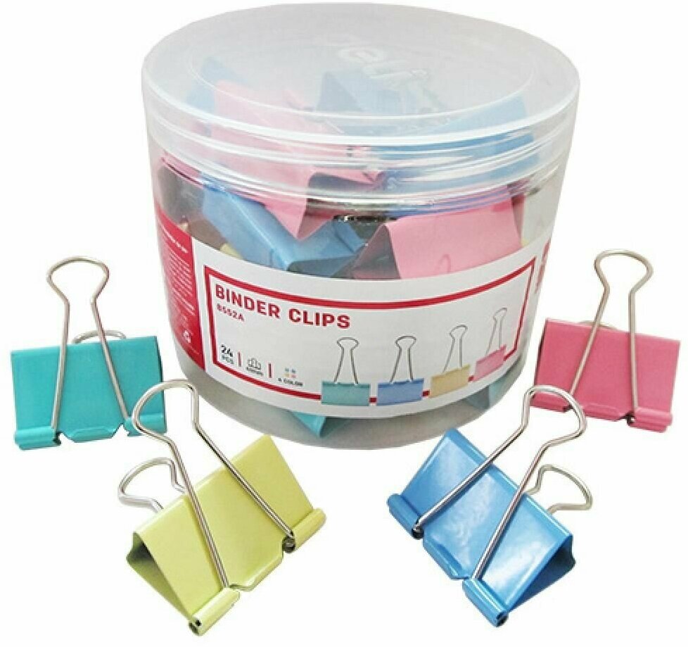 Набор зажимов для бумаг, 32 мм, цветные, 24 штуки, 4 цвета, микс