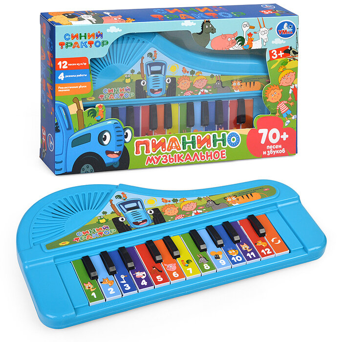 Музыкальное пианино "Синий трактор" (70 песен и звуков) в коробке