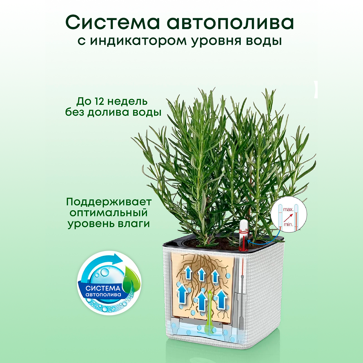 | Плюсы: | Удобство использования - собрала, вставила горшочек с цветком, налила воды, ориентируясь на датчик, - всё, цветы-водохлёбы пьют, сколько хотят, и выглядят прекрасно. |