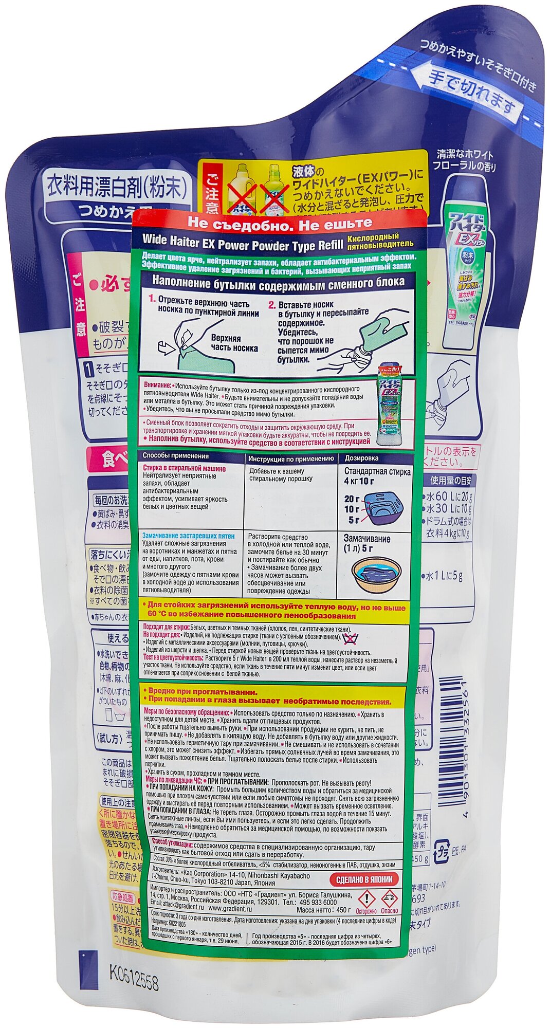 Kao Wide haiter Powder Type Порошковый кислородный пятновыводитель 450 г сменный блок