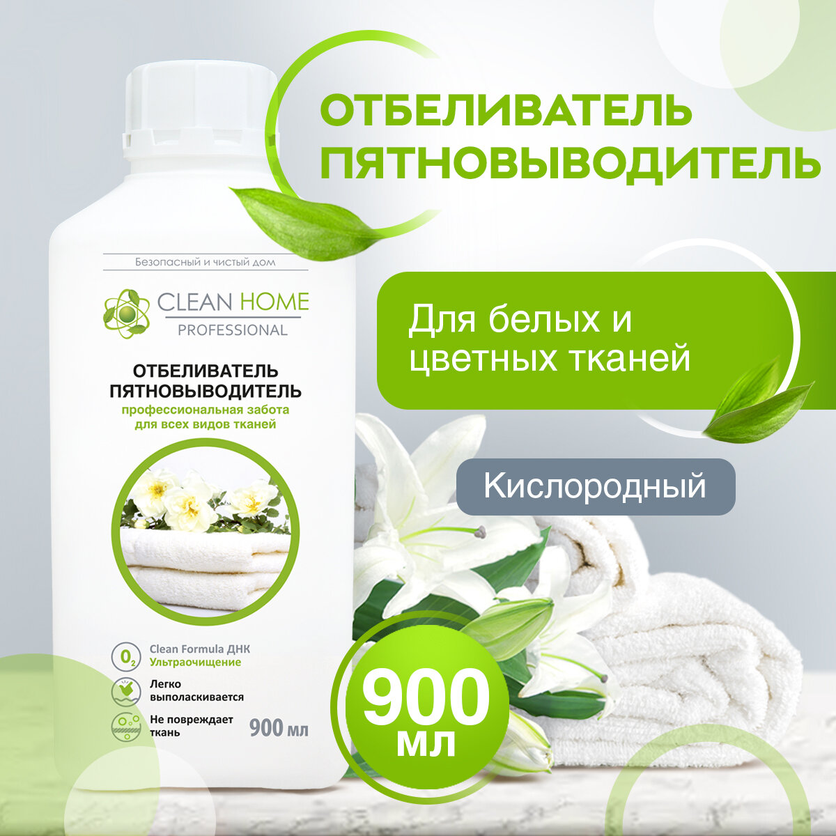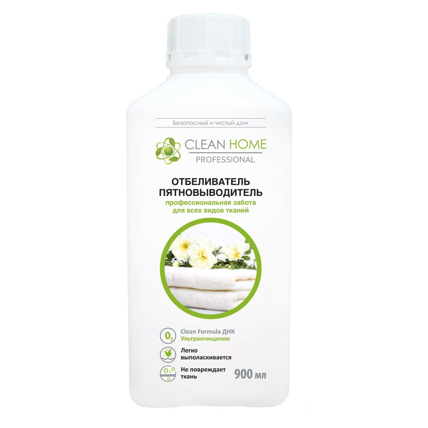 Отбеливатель пятновыводитель Clean home профессиональная забота, для всех видов тканей, 900 мл (4606531206650)