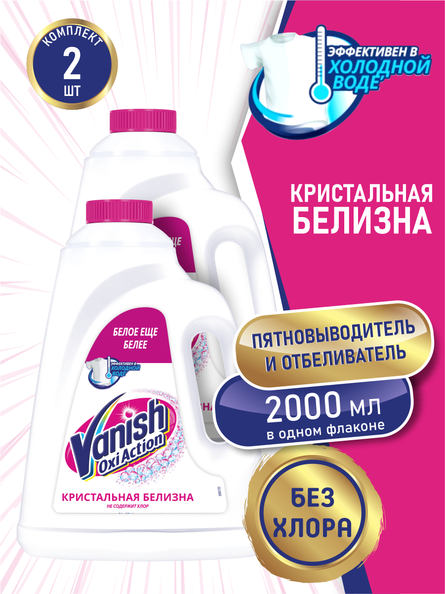 Купить VANISH OXI Action Кристальная белизна пятновыводитель и отбеливатель 2 литра х 2 шт.
