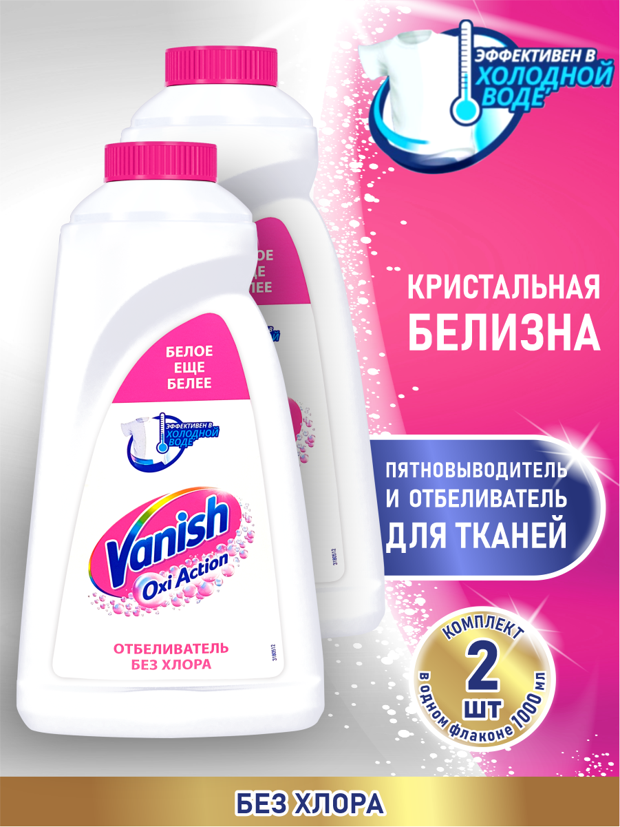 Купить VANISH OXI Action Кристальная белизна пятновыводитель и отбеливатель 1 литр х 2 шт.