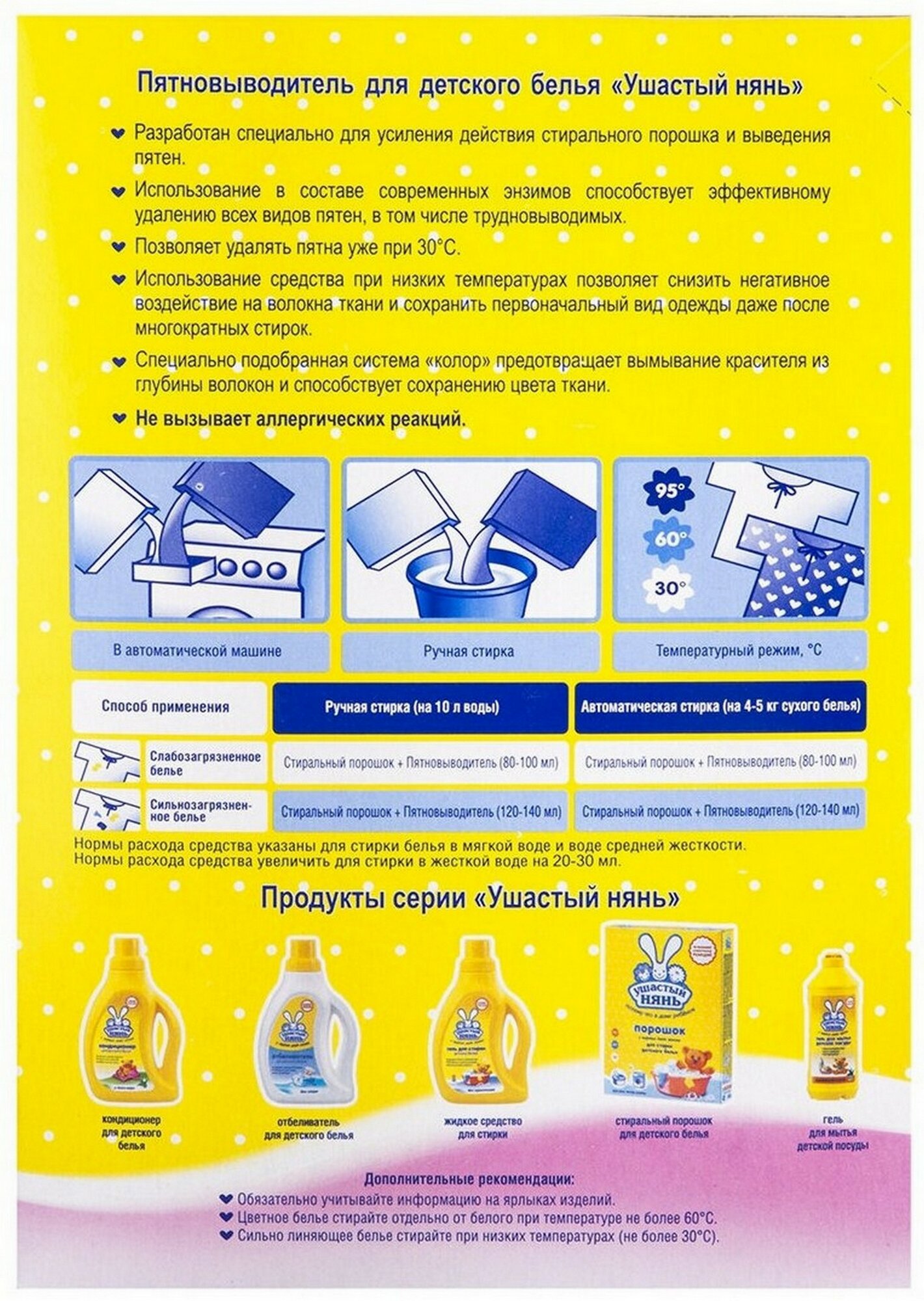 | Плюсы: | Выводит пятна на детских вещах |
