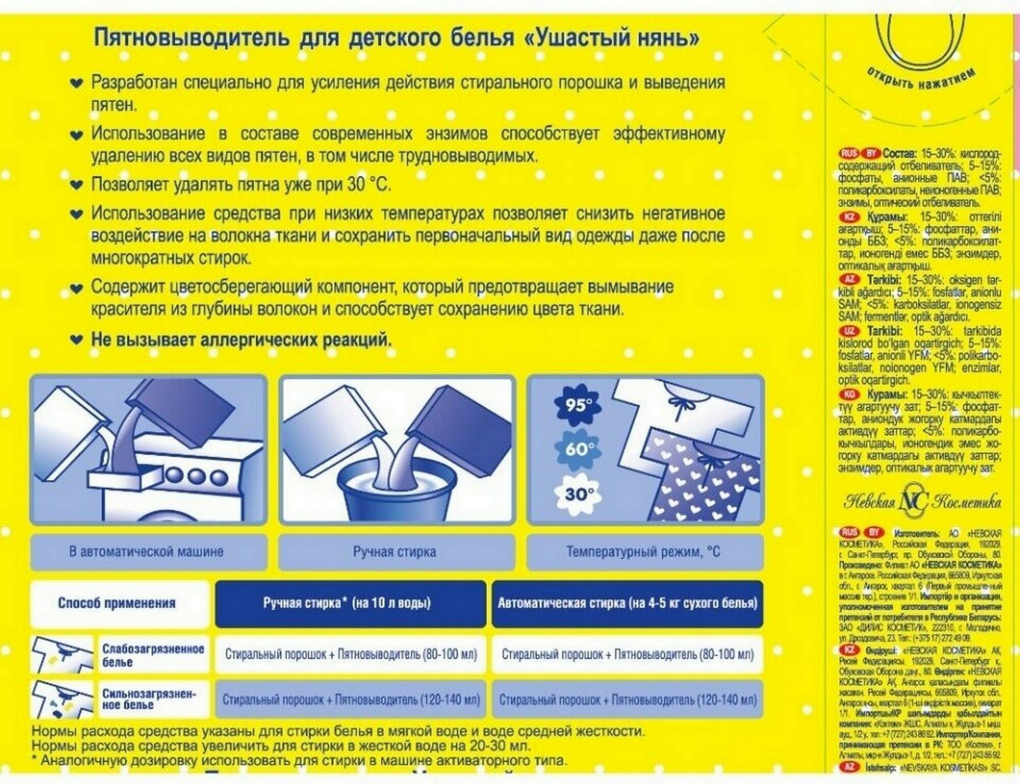 Ниже Вы можете прочитать отзывы на Ушастый Нянь Пятновыводитель с системой защиты цвета белья 500 г - 1 шт, ознакомится с подробными характеристиками, посмотреть интересные обзоры и фотографии на Ушастый Нянь Пятновыводитель с системой защиты цвета белья 500 г - 1 шт.