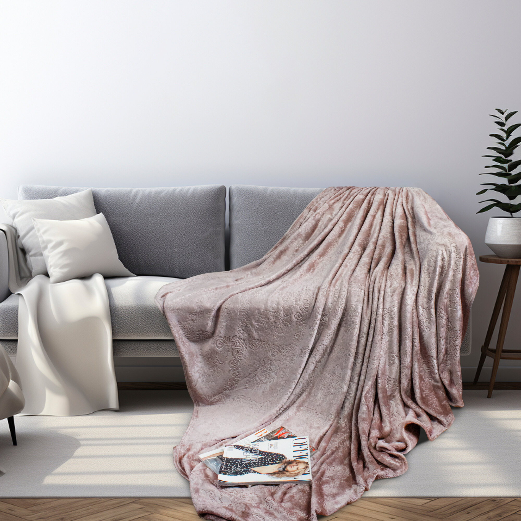 Плед двуспальный 180х200 розовый, покрывало на кровать и диван Cleo California, пушистый с рисунком, флисовый, велсофт