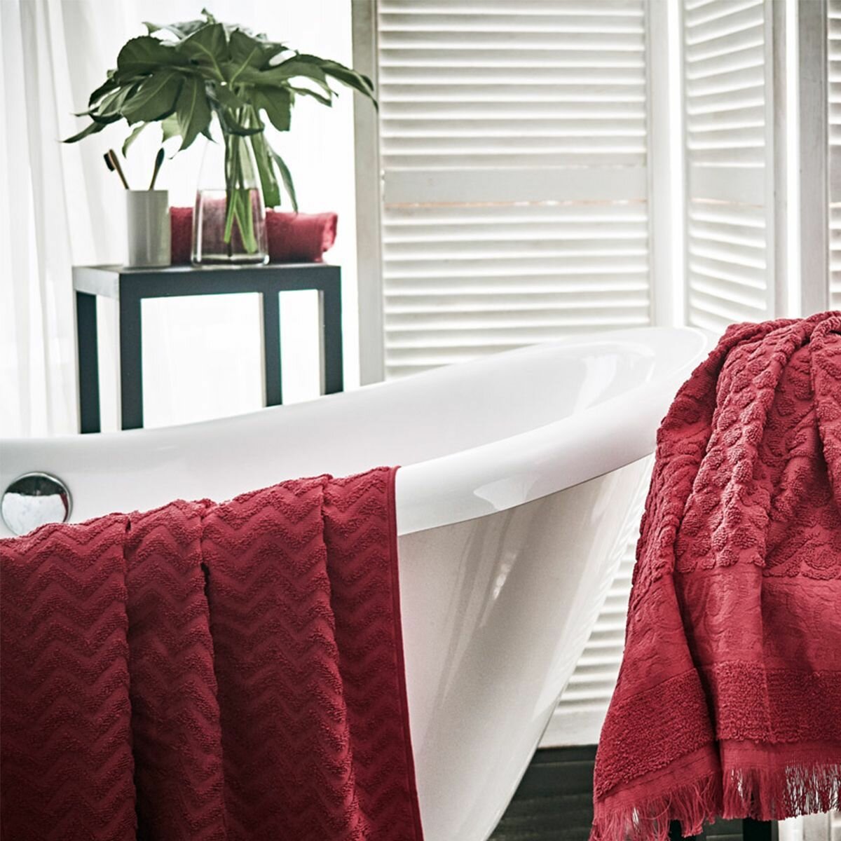 Полотенце махровое жаккардовое, Guten Morgen, 70х130, Зигзаг, Рубин, хлопок 100%, 400г/м2