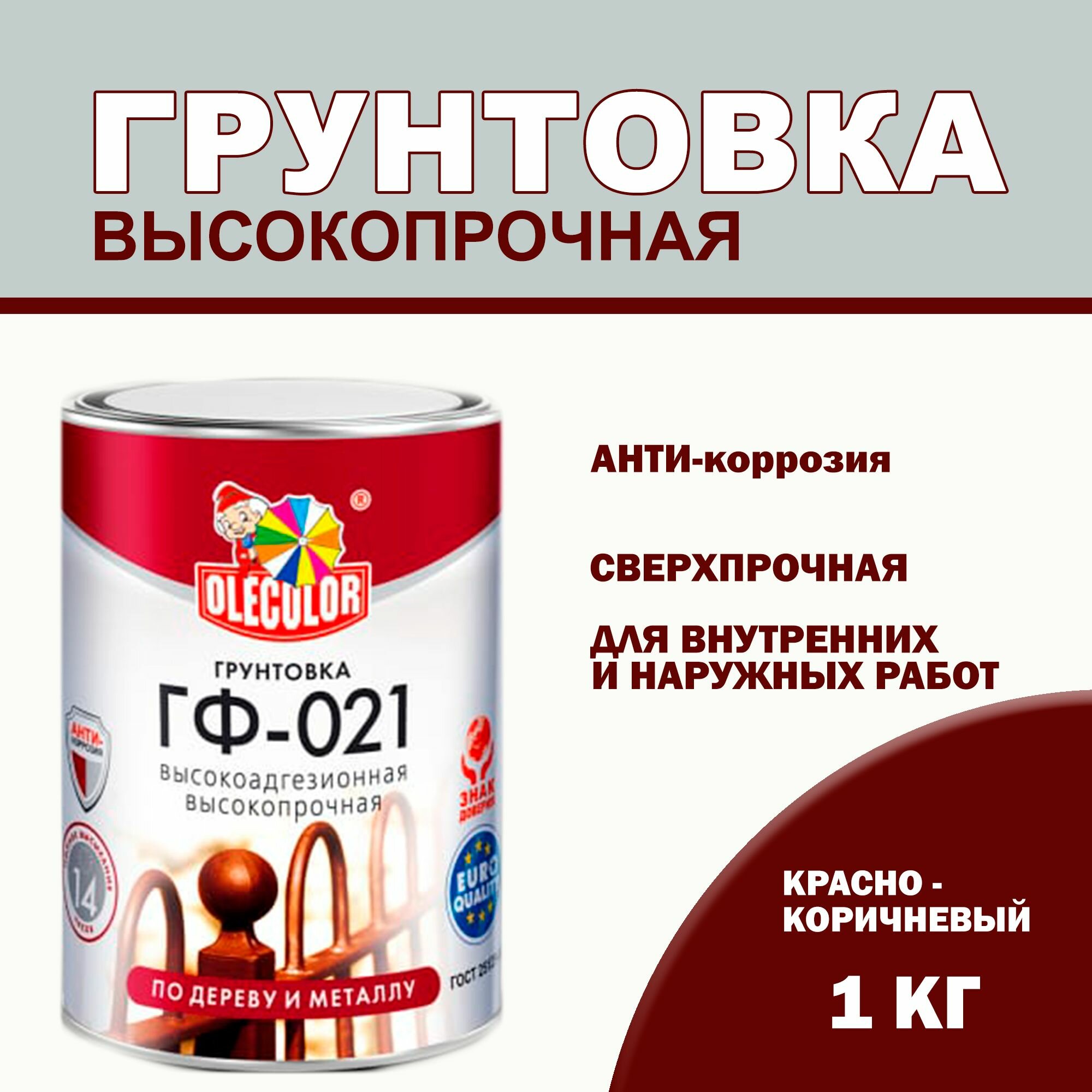 Купить Грунтовка OLECOLOR ГФ-021 Красно-коричневая 1кг Грунт по дереву и металлу
