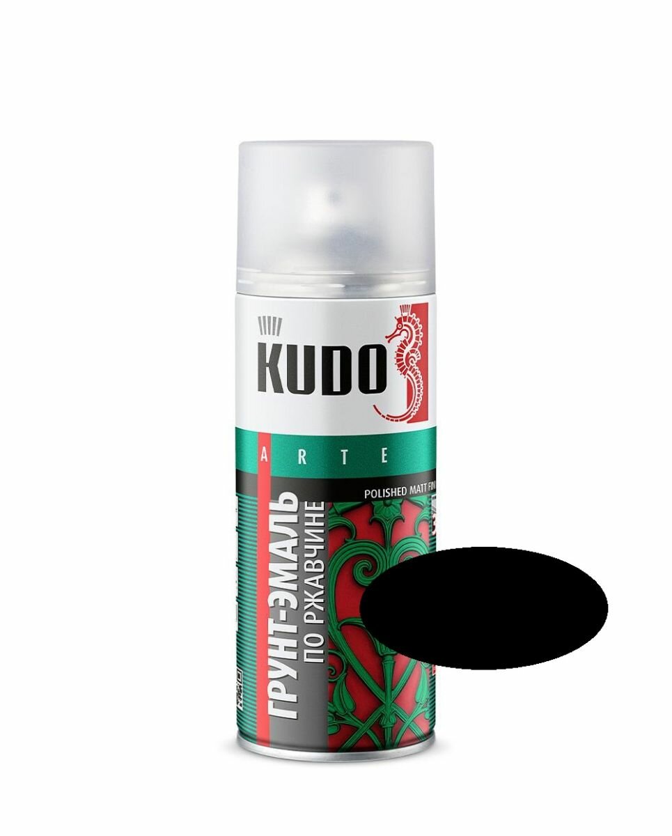 KUDO грунт-эмаль по ржавчине гладкая матовая RAL 9005 черная аэрозоль 520 мл