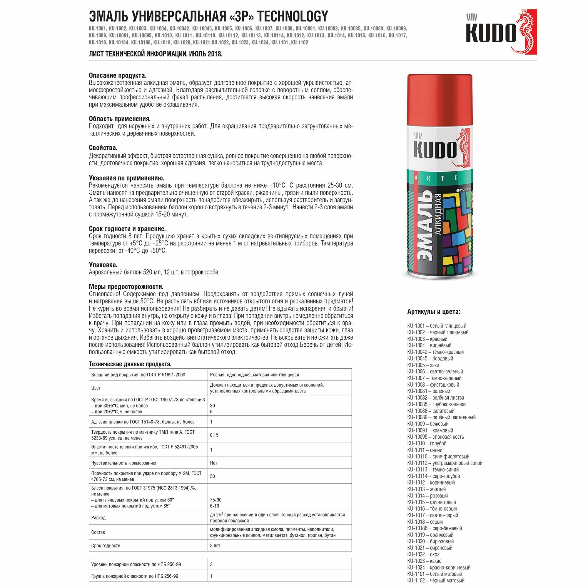 Kudo-10088 Эмаль Салатовая 520Мл Алкидная Kudo арт. KU10088