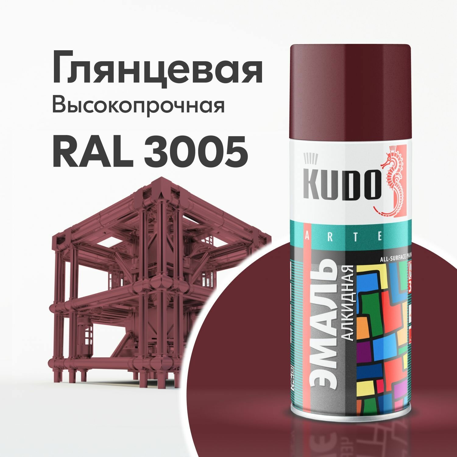 Аэрозольная алкидная краска Kudo KU-1004, 520 мл, RAL 3011, вишневая