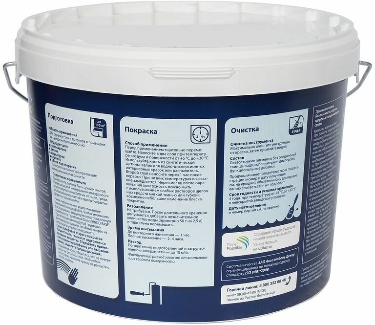DULUX 3D White база BW белая краска в/д для потолков и стен матовая (9л) / DULUX 3D White base BW краска ослепительно белая для потолков и стен матова