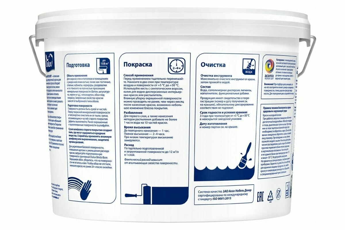 Краска Dulux Acryl Matt BW латексная для стен, потолков и обоев, 9 л