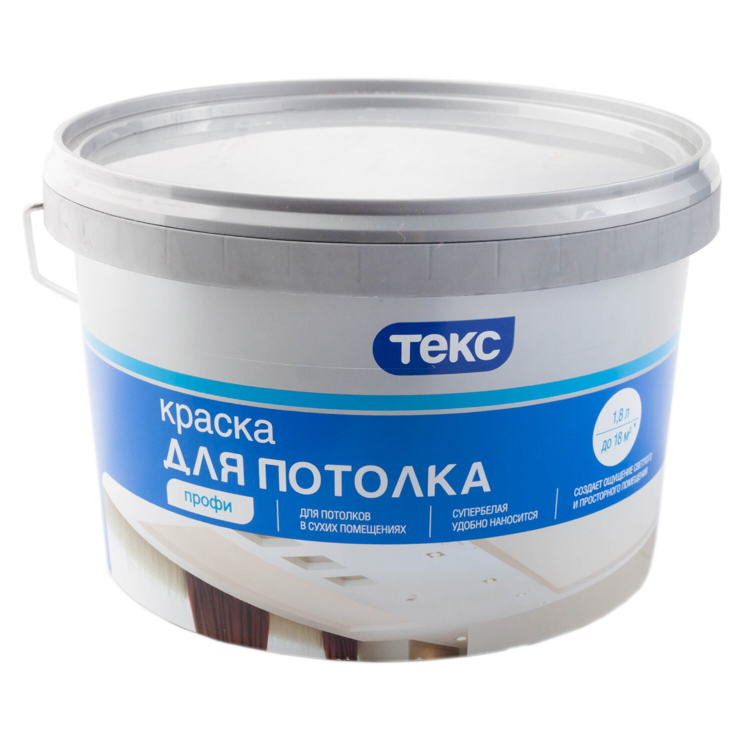 Текс Для потолков краска в/д (1,8л) профи / текс Для потолка краска в сухих помещениях (1,8л) класс профи