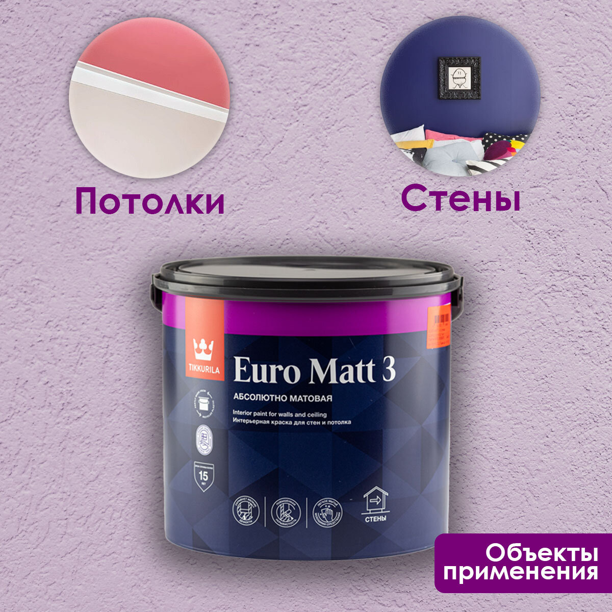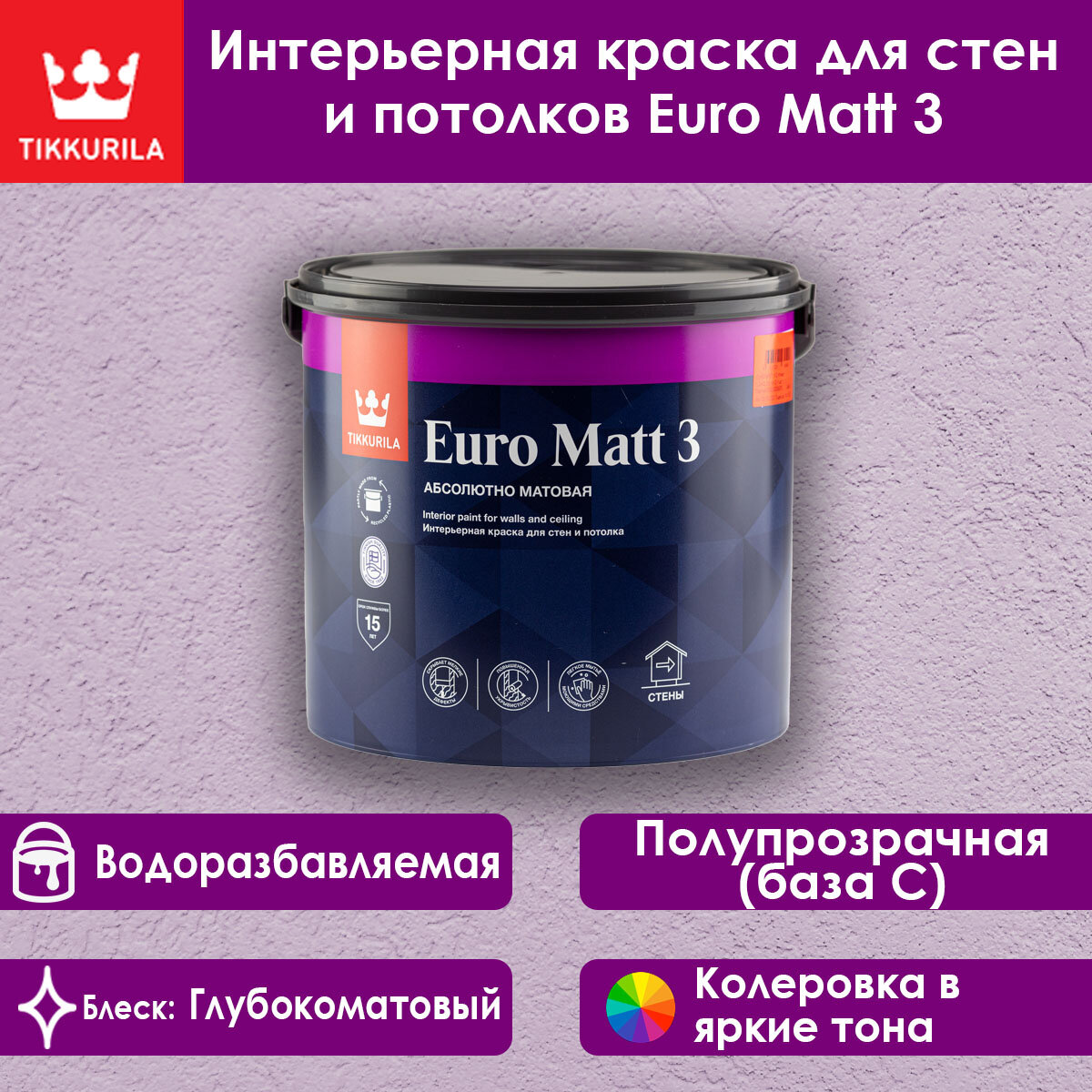 TIKKURILA EURO MATT 3 краска интерьерная для стен и потолков, абсолютно матовая, база C (2,7л)