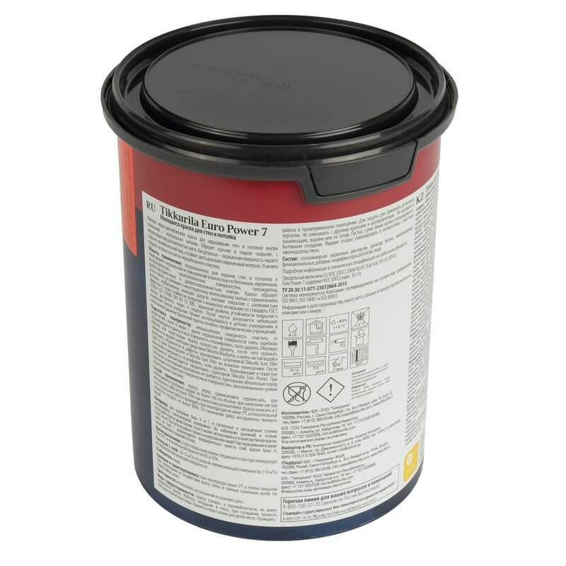 Краска В/Д TIKKURILA (EURO POWER 7, 0,9 л, Моющаяся, д/стен и потолков, Бесцветная. (ЦБ-00000718))