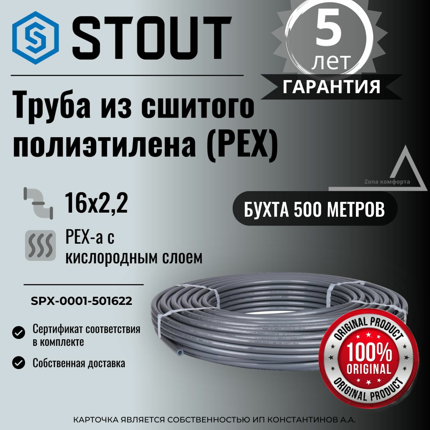 STOUT 16x2,2 бухта 500 м PEX-a труба из сшитого полиэтилена с кислородным слоем, серая SPX-0001-501622 RG008S5FUD0ESR