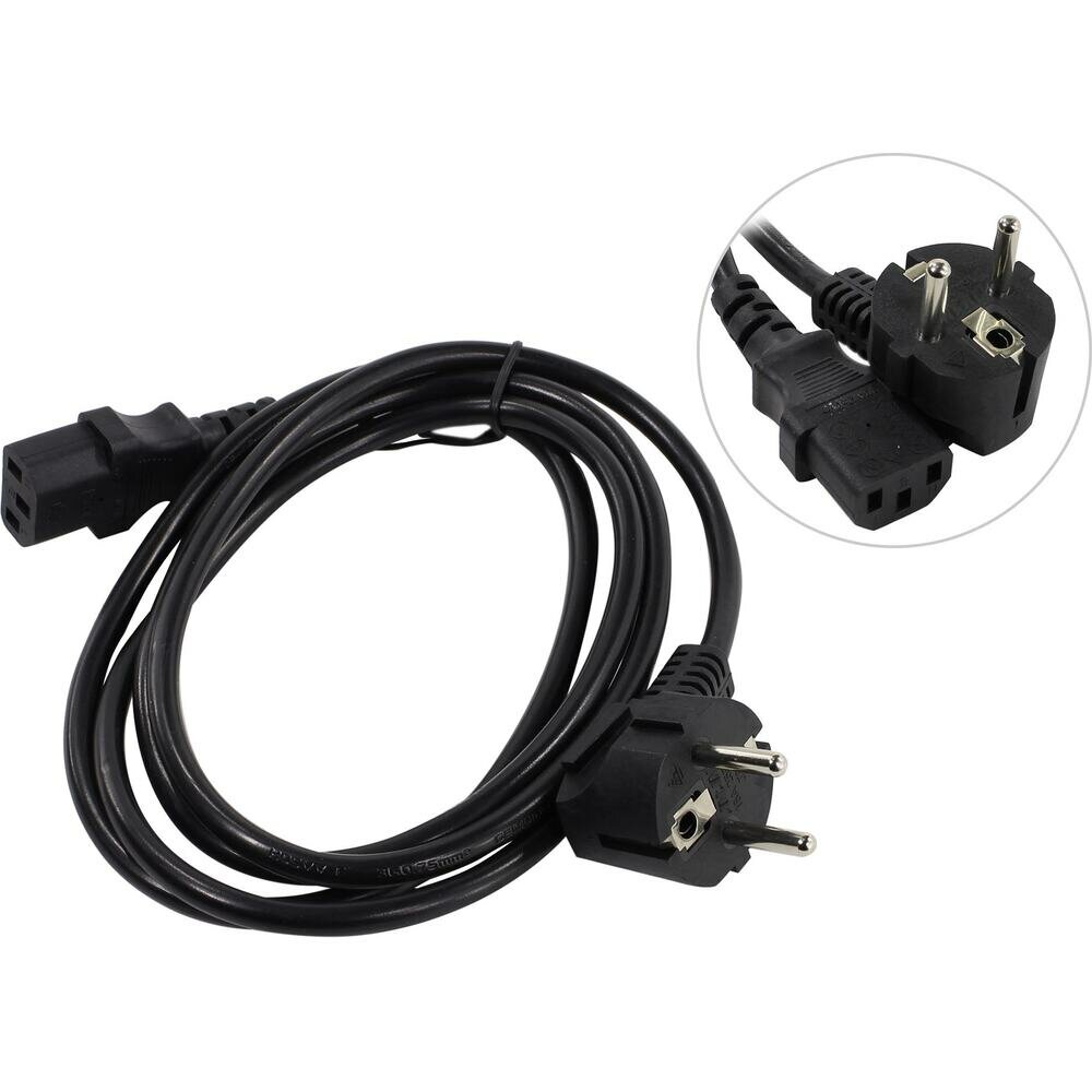 Кабель Cablexpert питания 3м, Schuko- C13, VDE, 10А, Сечение провода: 0,75 мм2, черный, с заземлением {75} (037853)