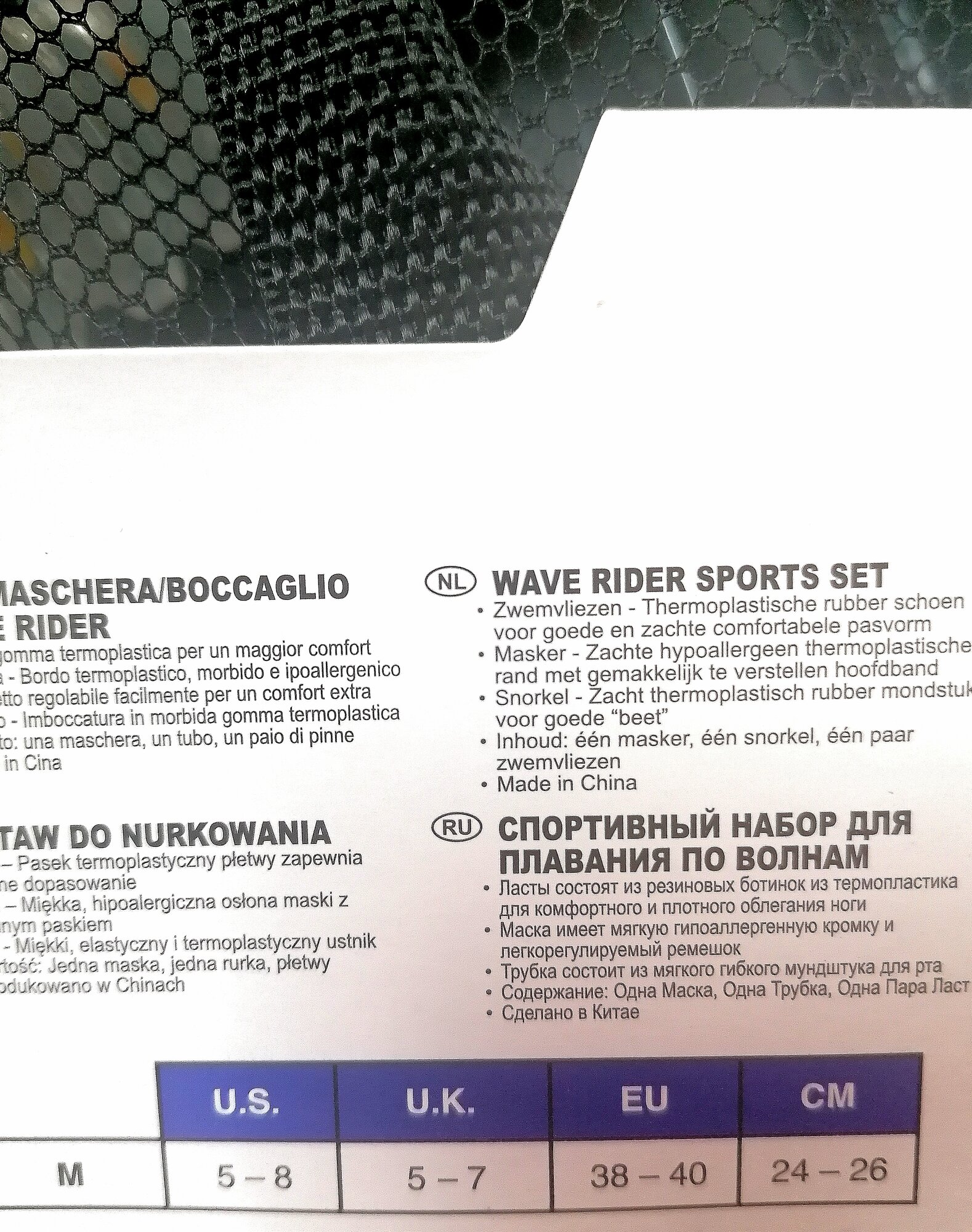 Ниже Вы можете прочитать отзывы на Набор для подводного плавания INTEX 55658 Wave Rider, 3 предмета: маска, трубка, ласты, от 8 лет, ознакомится с подробными характеристиками, посмотреть интересные обзоры и фотографии на Набор для подводного плавания INTEX 55658 Wave Rider, 3 предмета: маска, трубка, ласты, от 8 лет.