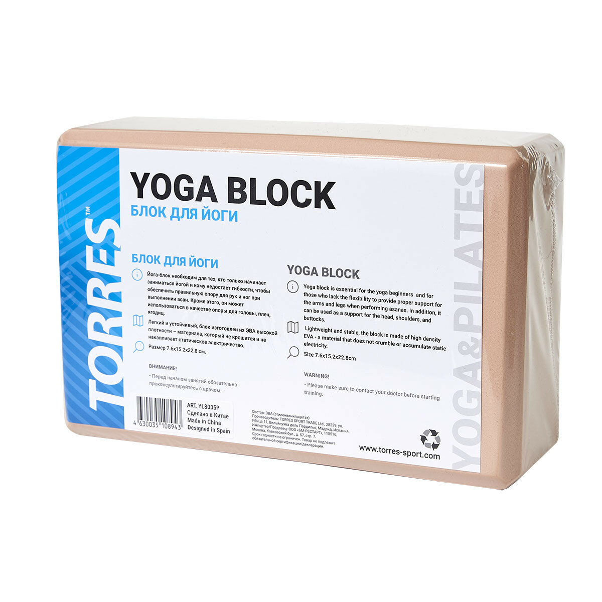 Блок для йоги Torres Yl8005p размер 8x15x23см, эва, пудровый
