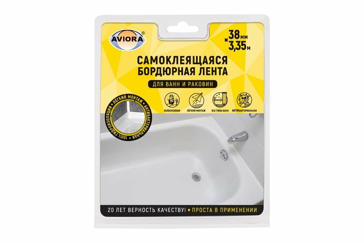 Бордюрная самоклеящаяся лента для ванн и раковин, 38 мм х 3,35 м, AVIORA