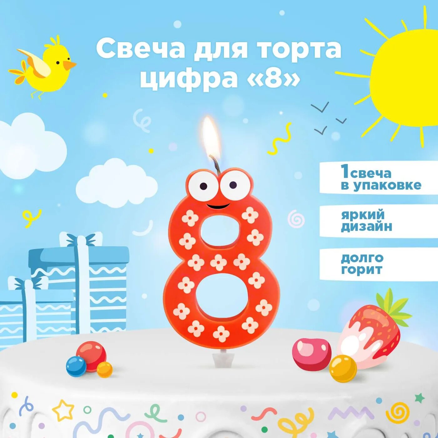 СохранитьPATERRA Свеча детская для торта цифра 8 1шт в упаковке 401-529 интересное: