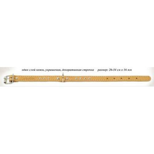 Аркон Ошейник кожаный 16, размер 26-34 см x 16 мм, цвет натуральный, о16, один слой кожи, украшения, декоративная строчка