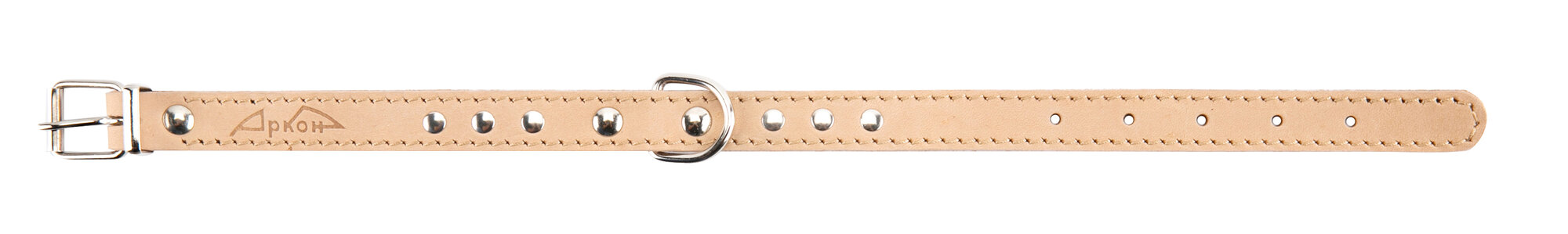 Аркон ошейник один слой кожи, украшения, декоративная строчка 26-34см*16мм натуральный