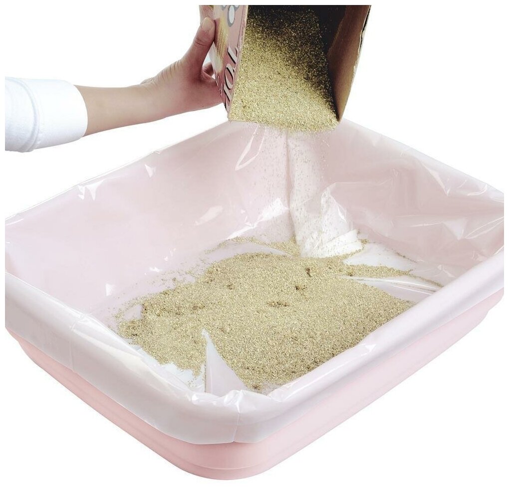 Туалет для кошек с бортом и совком DUO, светло-розовый, 59х40х28 см