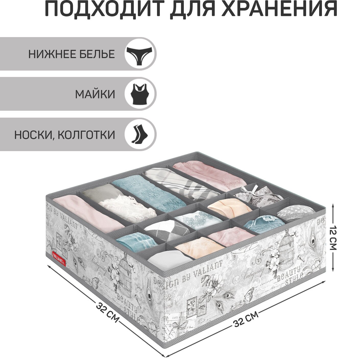 СохранитьОрганайзер для белья универсальный без крышки, 15 секций, 32*32*12 см, VINTAGE GREY интересное: