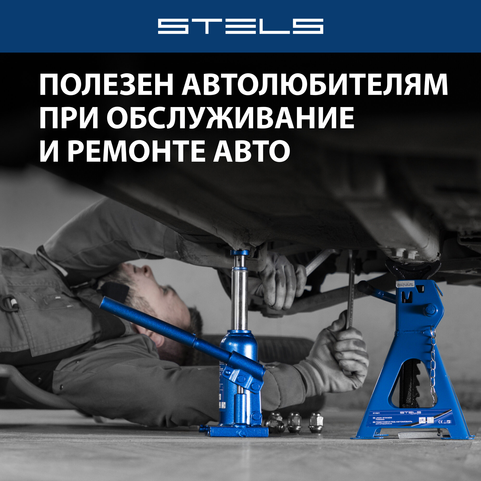 Stels 51115 2 т, подъем 170-380 мм blue