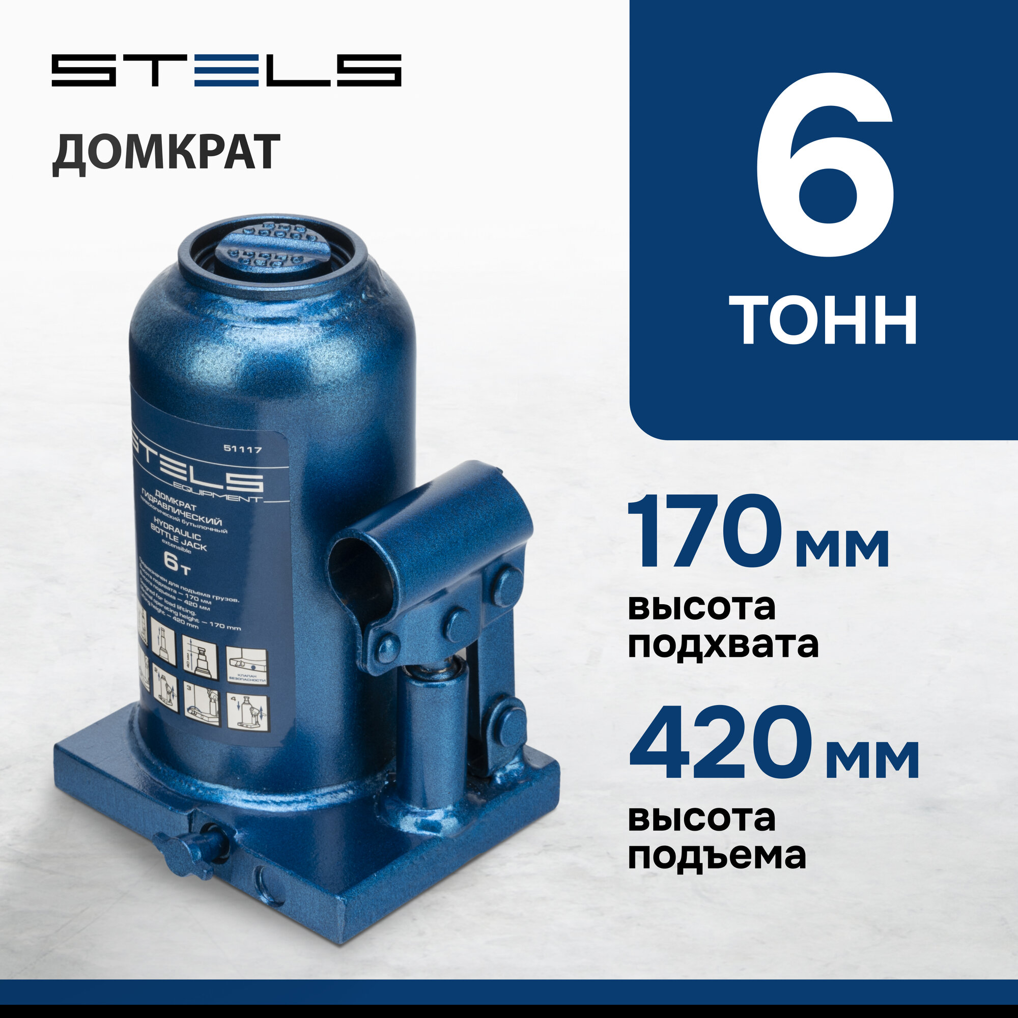 Домкрат гидравлический бутылочный Stels Equipment STELS 6 т, h подъема 170–420 мм, 51117