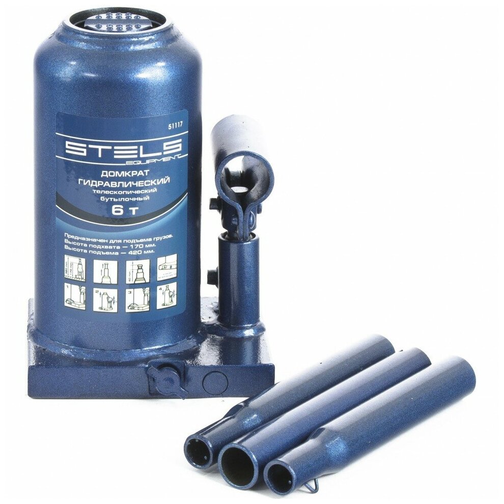 Домкрат гидравлический бутылочный телескопический, 6 т, H подъема 170-420 мм Stels, ( 51117 )
