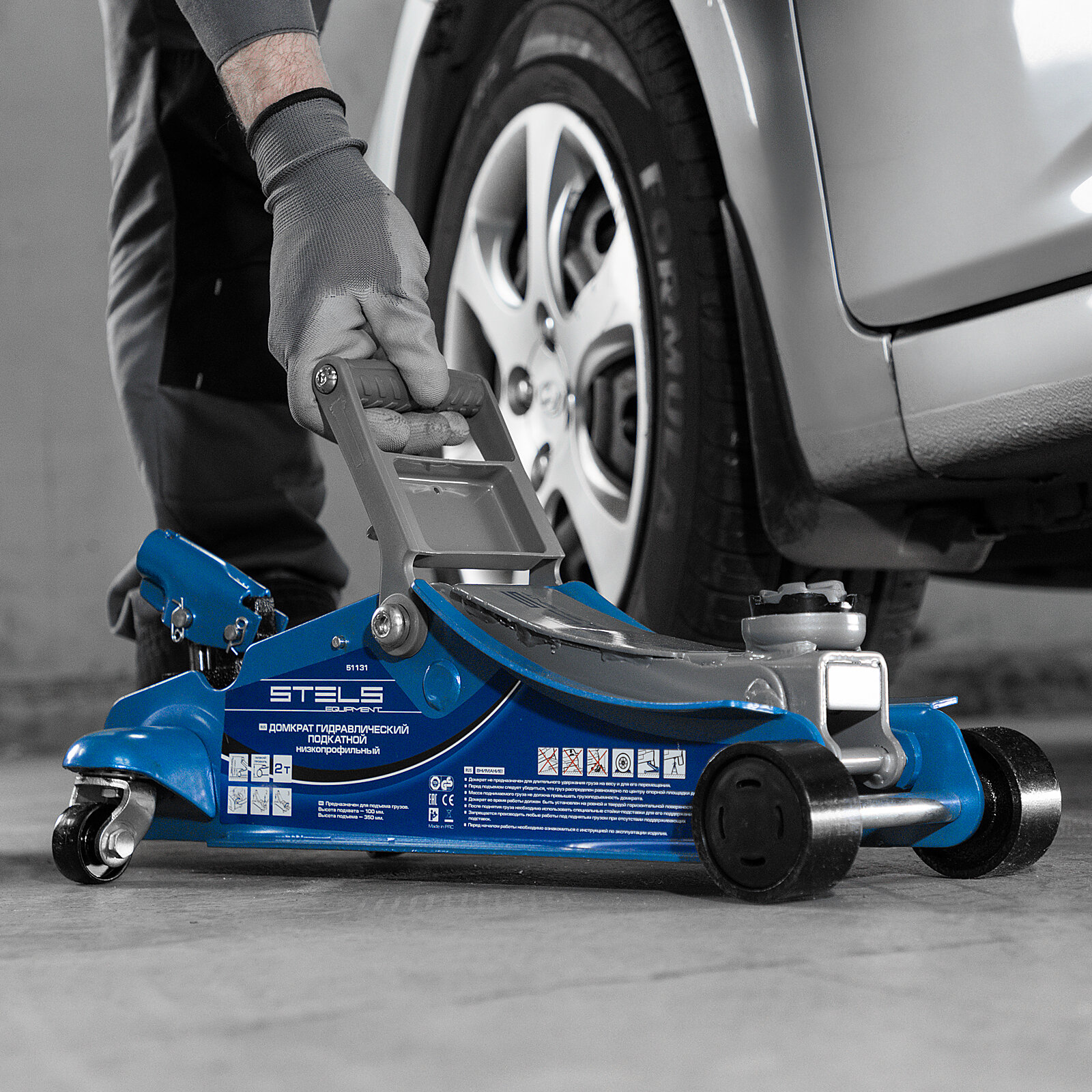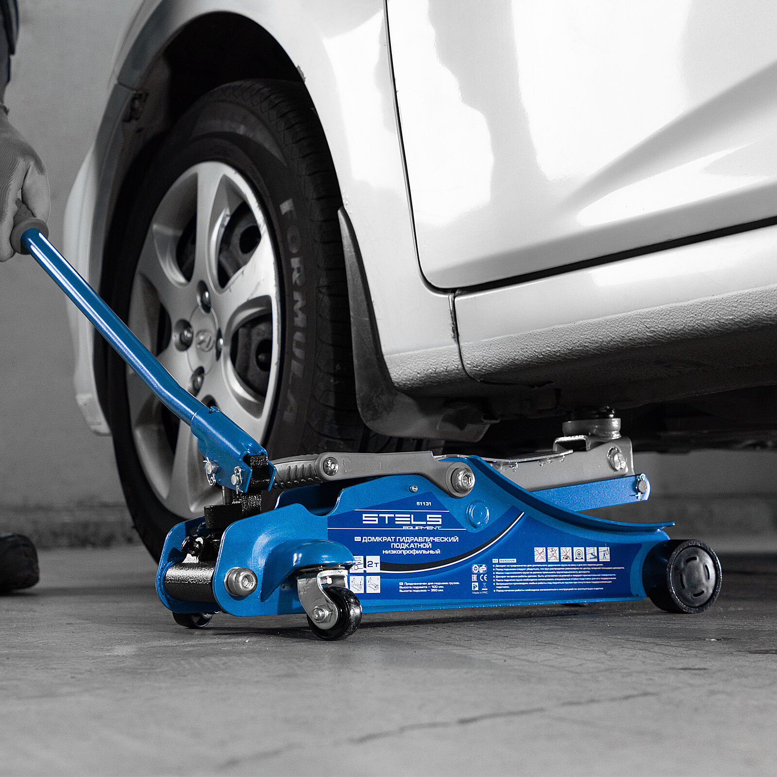 Домкрат подкатной гидравлический Stels 51131 (2 т) синий