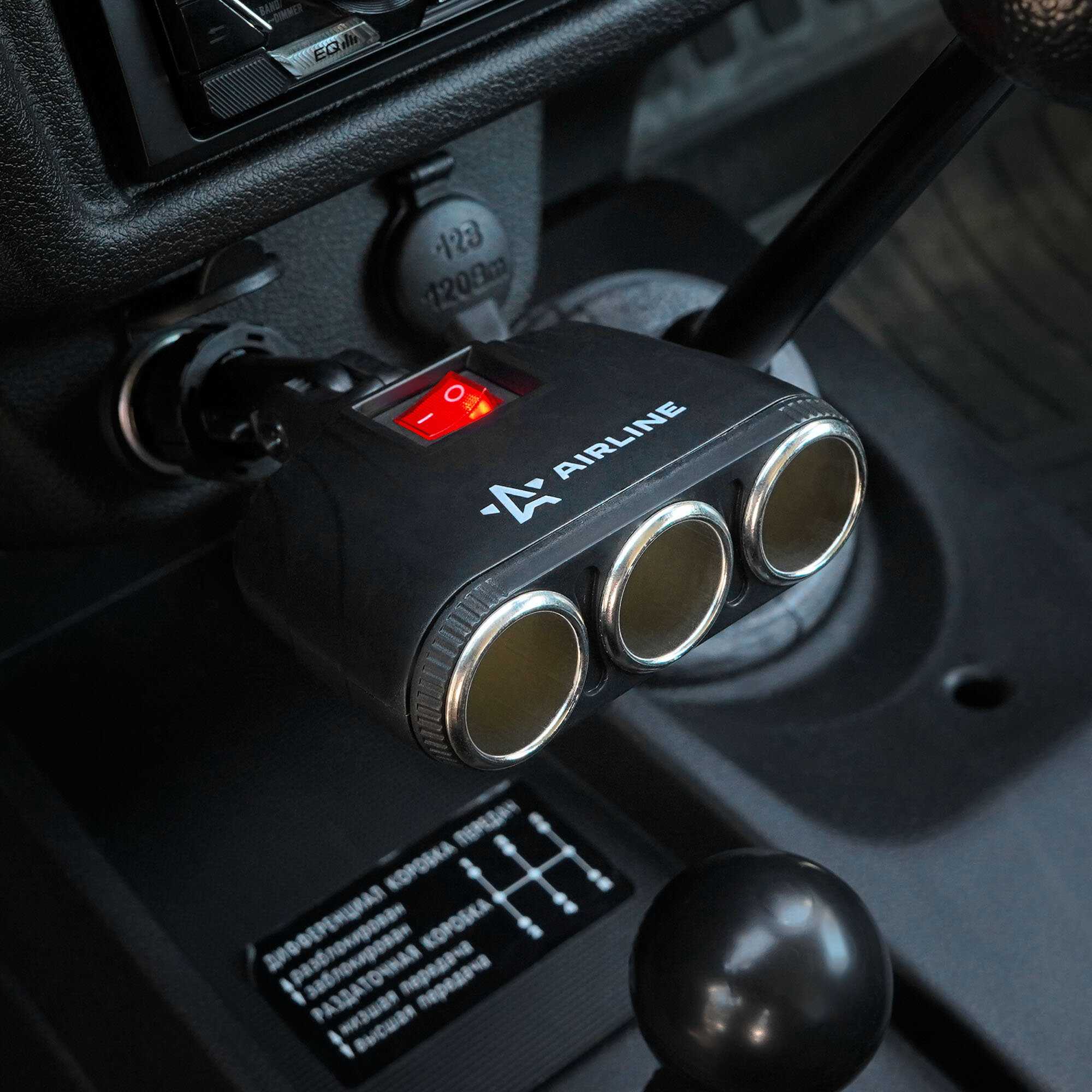 Разветвитель AIRLINE трансформер на 3 прикуривателя, штекер-фиксатор