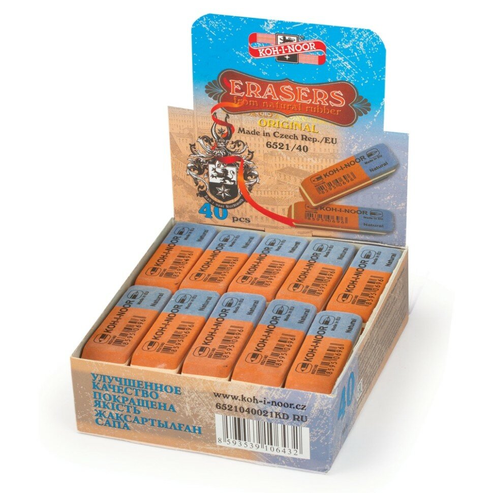 Купить Комплект 40 шт, Ластик KOH-I-NOOR 6521/40, 57x19.5x8 мм, красно-синий, прямоугольный, скошенные края, натуральный каучук, 6521040021KDRU