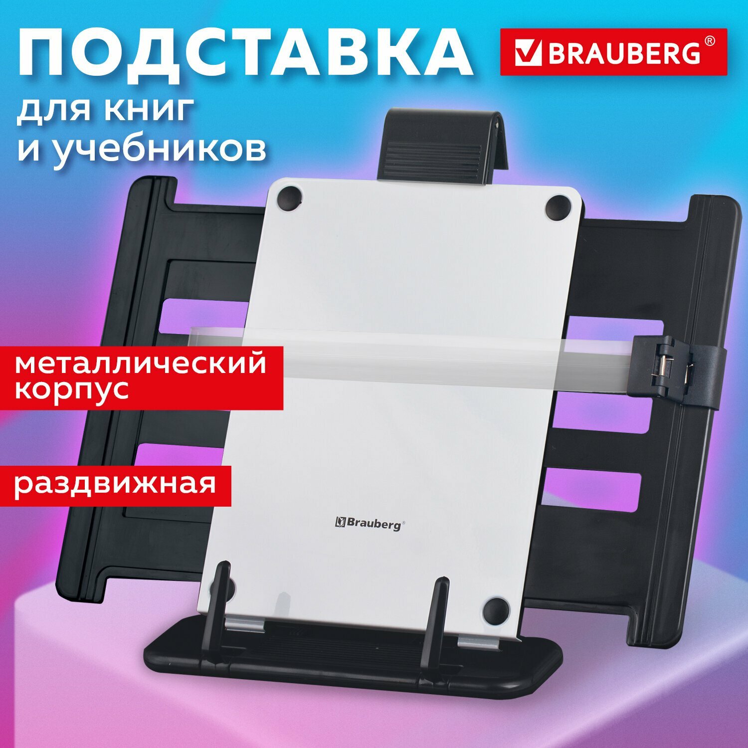 Подставка для книг, учебников, журналов BRAUBERG большая, регулируемый угол наклона, раздвижная, 230910, 230910