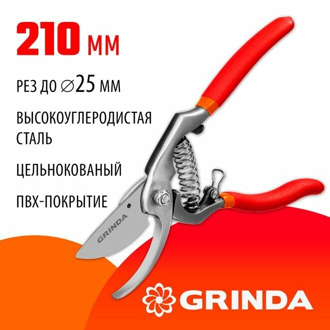 GRINDA G-7 Секатор цельнокованый, с направленным под углом лезвием, 210мм, рез до 25 мм, GRINDA, ( 423107 )