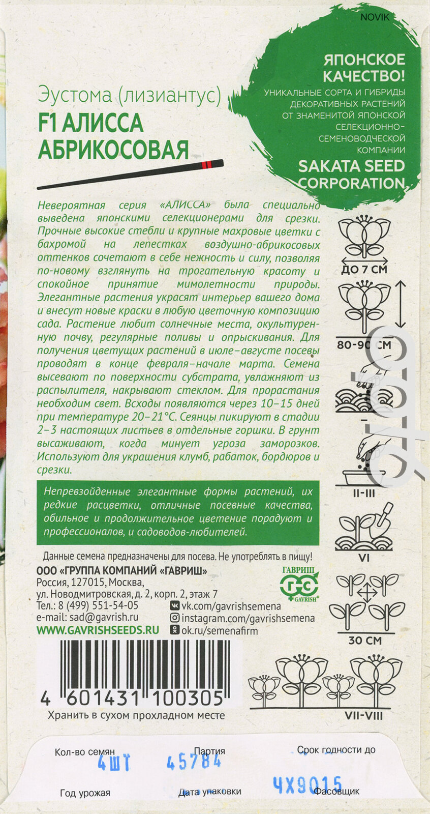 СохранитьГавриш Семена Эустома Алисса абрикосовая F1 крупноцвет. 4 шт. гранул. пробирка 1026996066 интересное: