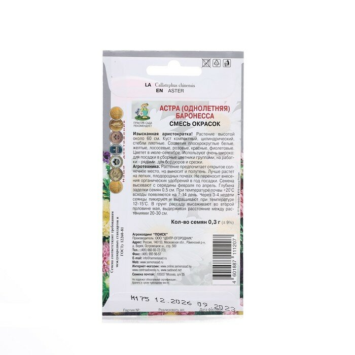 Семена Астра Баронесса Смесь окрасок 0,3г смесь Одн 60см (Поиск)