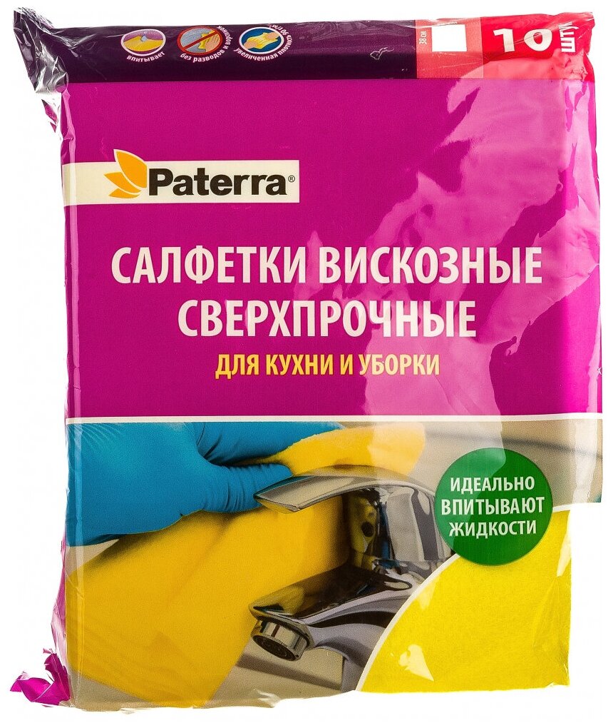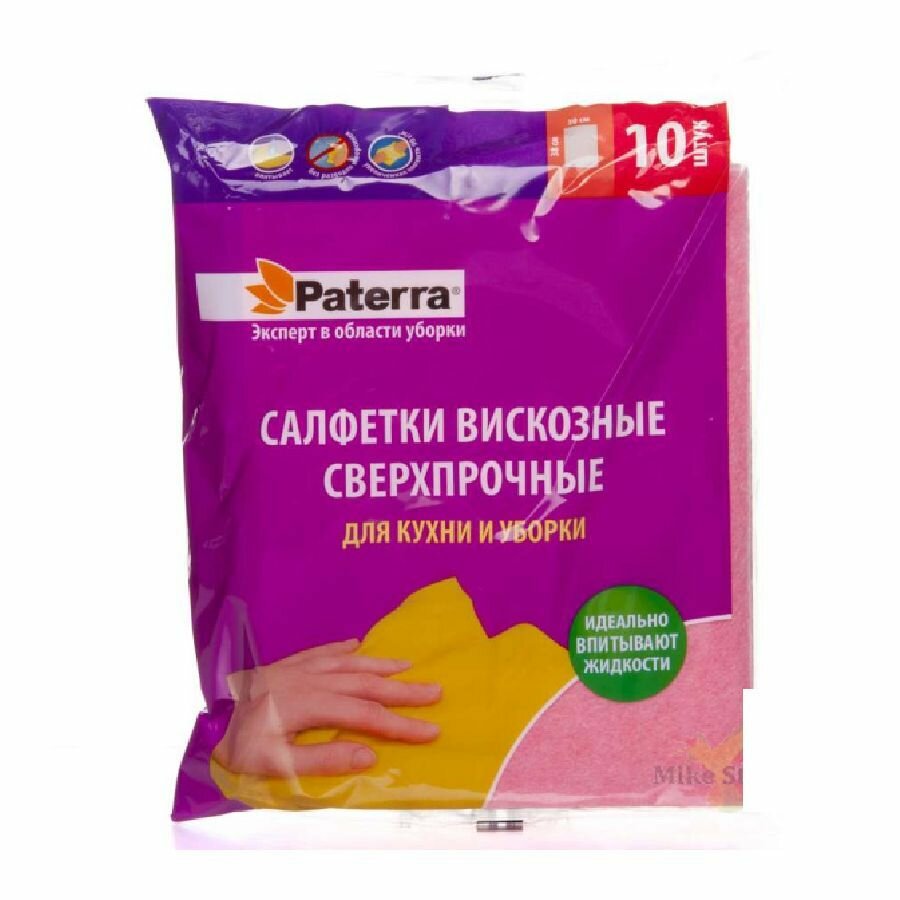 Салфетки вискозные «сверхпрочные» для кухни и уборки, PATERRA, 10 шт. в упаковке, 30 х 38 см