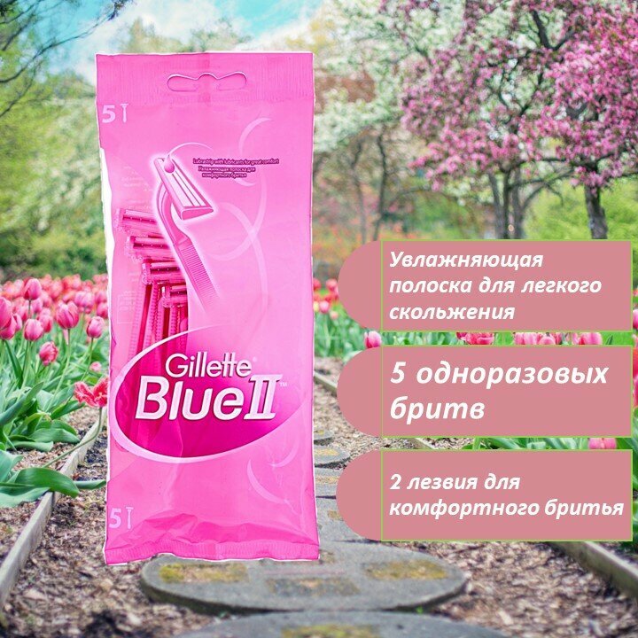 Gillette Blue II Бритвенный станок, женский, 5 шт.