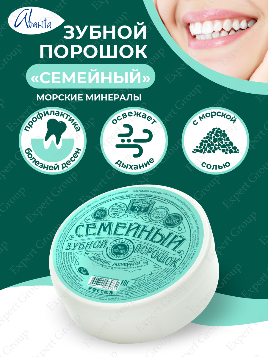 Купить Зубной порошок Аванта "Семейный", с морскими минералами, банка 140 см3