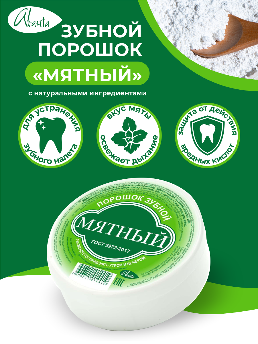 Зубной порошок Аванта Мятный с натуральными ингредиентами 1 шт.