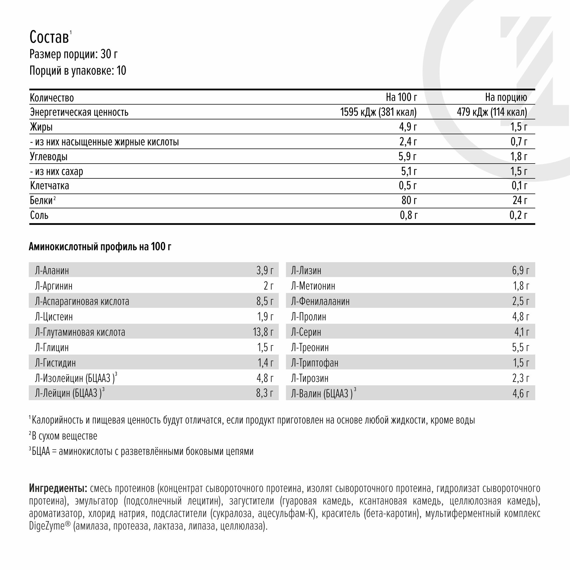 Сыворотка сама по себе хорошо усваивается, так еще и мультиферментный комплекс добавили. Вкус приятный, хотя малину с белым шоколадом заказал по ошибке и думал не понравится, а на деле очень приятно пахнет и вкус на высоте - очень рекомендую попробовать, Я вкуснее протеина еще не пробовал. За такую цену идеальный выбор. |