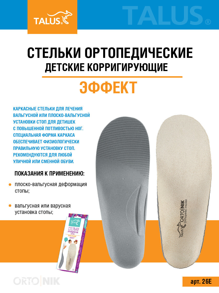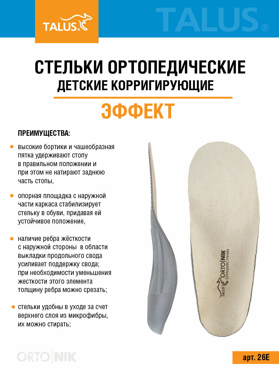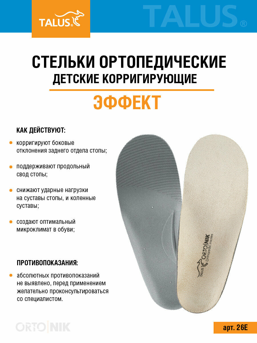 Стельки ортопедические Talus Эффект 26Е детские, (24) см