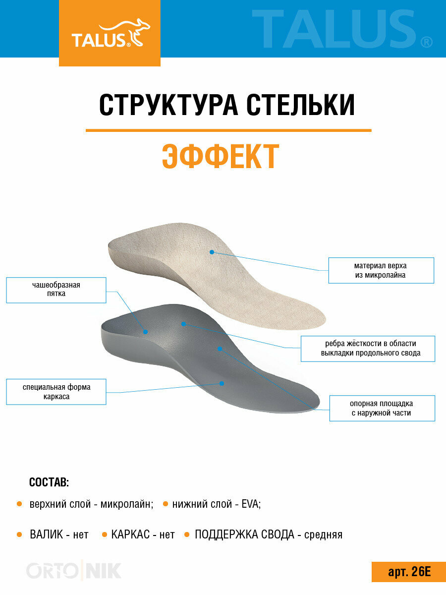 Стельки ортопедические коррегирующие Talus Эффект 26Е 23